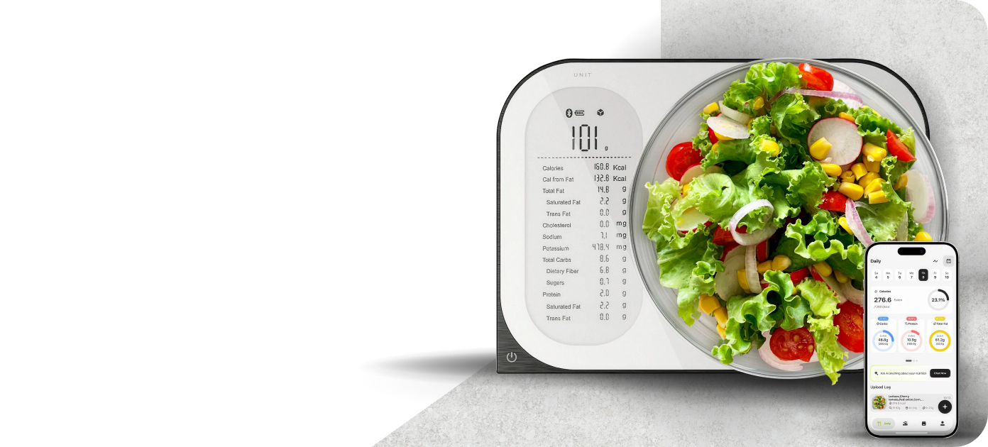 With the Ultrean Smart Food Scale, fully integrated with the NutriScale app.