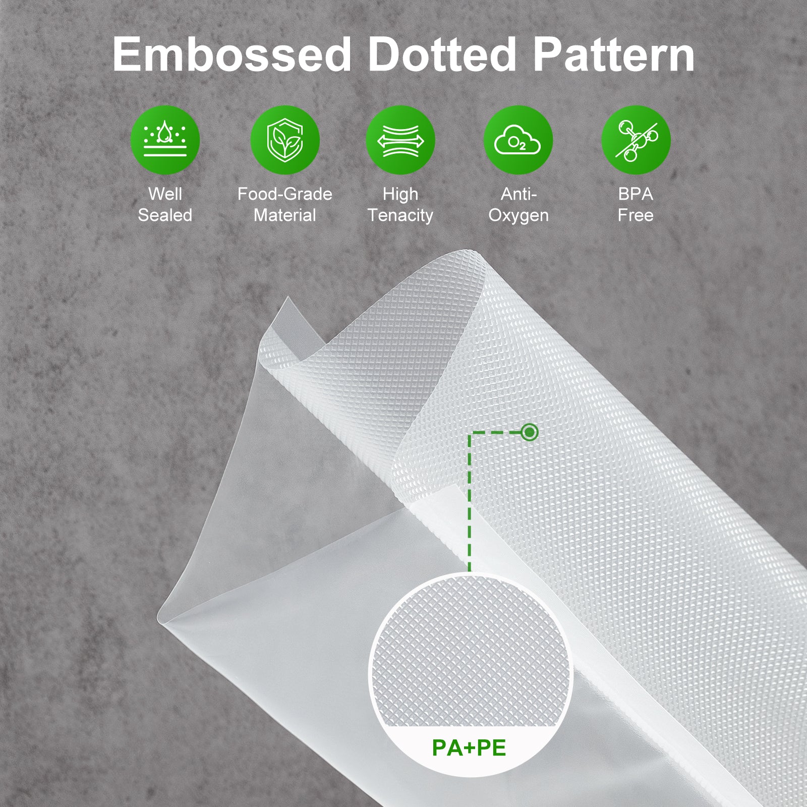 - Puncture Prevention and Durability: The single-sided embossed dotted design enhances suction while preventing punctures from bones. The high-tenacity construction creates an air-isolated environment, ensuring that your food stays fresh for longer