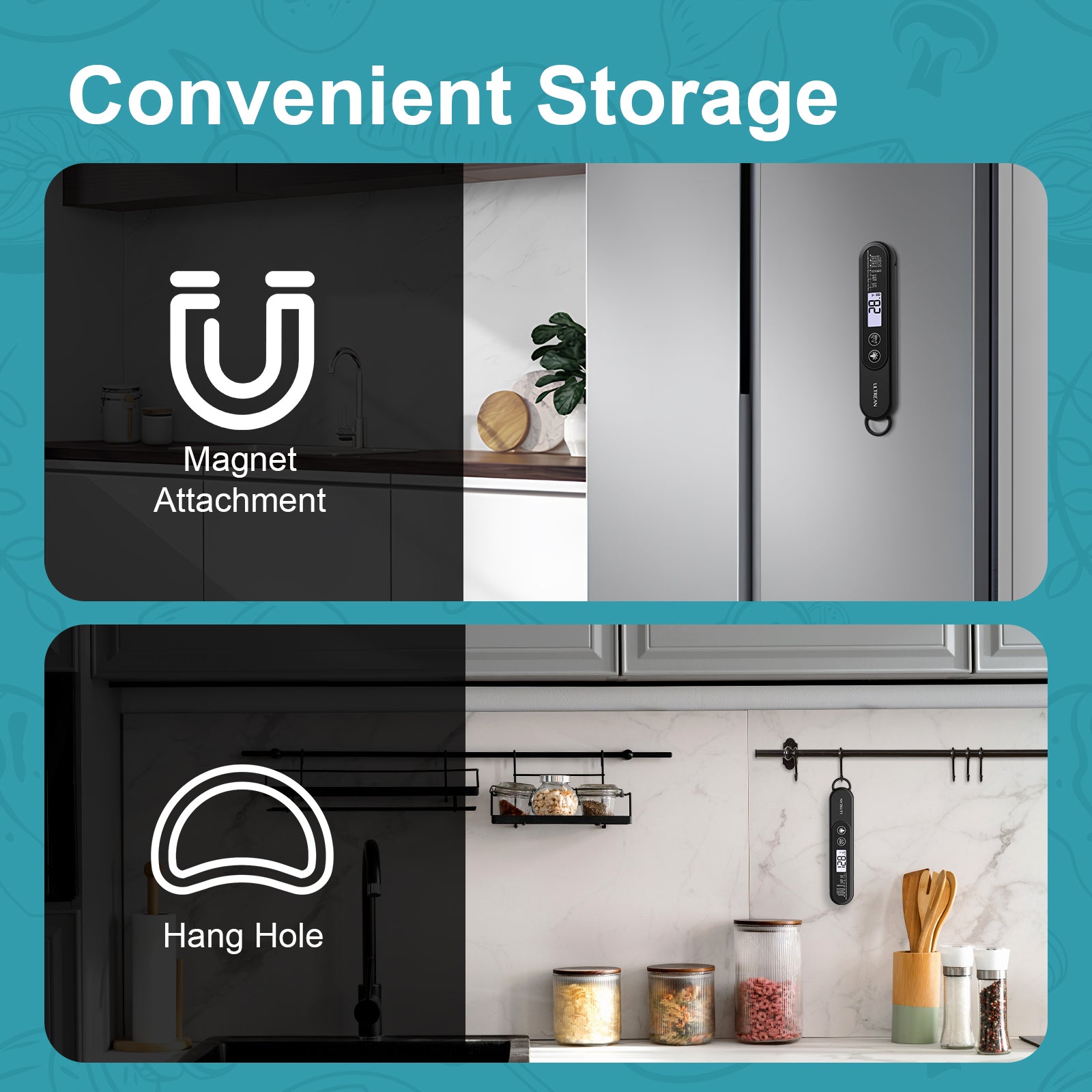- [Waterproof and Durable] - The thermometer is rated IP66 waterproof, making it easy to clean under running water after use, no worries! It also has a magnetic back for placement on any metal surface or use with a hanging hook. (Note: Only rinse, do not submerge.)